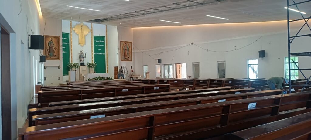 El cielo falso colapsó y, desde entonces, al mirar hacia arriba solo podía verse la estructura expuesta y el techo de losa, dejando al templo con una apariencia incompleta, fría y poco digna para la liturgia y el encuentro comunitario.